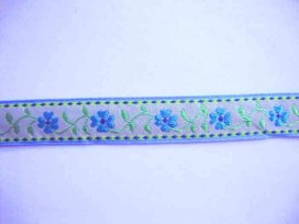 Sierband Bloem Lichtzand met een aqua bloem 20mm