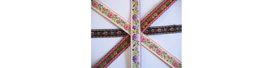 Sierband Wit met rode bloem en rode sierrand 25mm breed