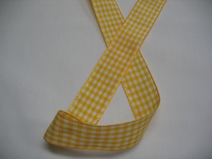 Boerenbont ruitjes lint. Geel/wit geruit sierlint