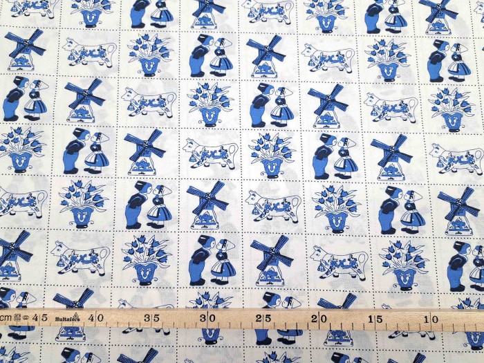 Delfts blauwe katoen. Dit is de originele print van vroeger herdrukt. Blokje is 5.5x5.5 cm.