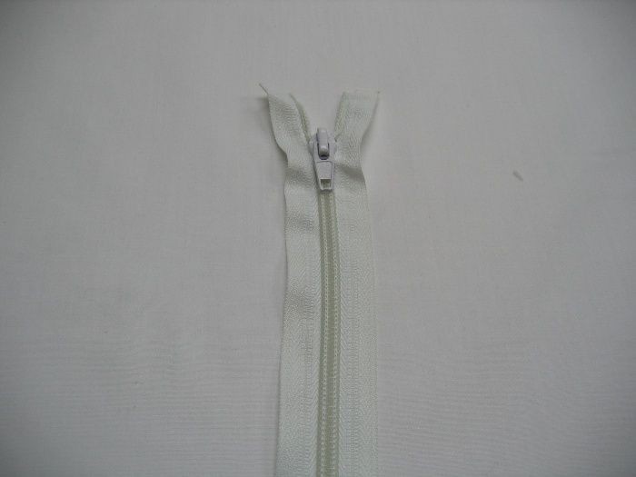 Witte deelbare fijne rits. 55 cm. lang