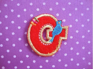 Een opstrijkbare applicatie met een doorsnee van zo'n 3 cm.