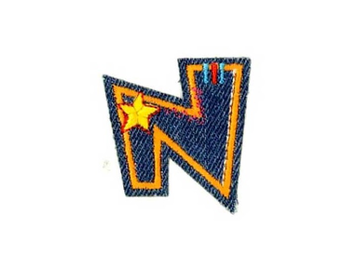 Een opstrijkbare letter N applicatie met een doorsnee van zo'n 3 cm.