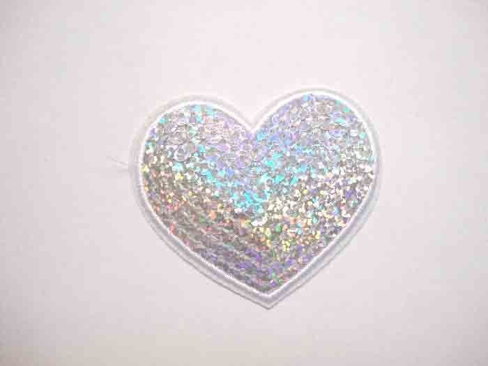 Een opstrijkbare hartjes applicatie van ongeveer 6 x 6 cm.