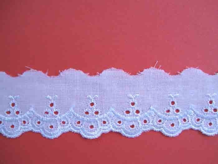 Wit katoenkant met punt en gaatjes 15mm. 942K