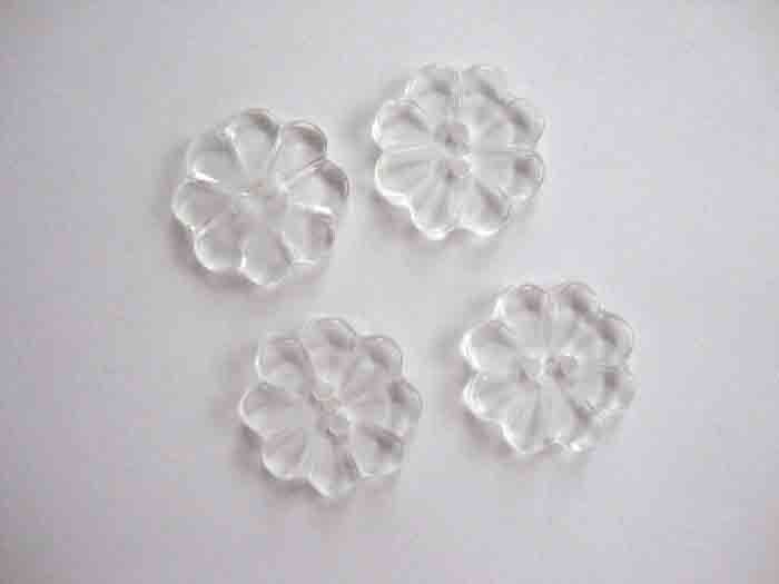 Een wit doorschijnende kunststof bloemknoop met een doorsnee van 25 mm.