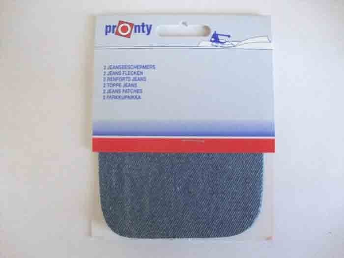 Licht jeans kleurige opstrijkbare kniestukken. per twee verpakt