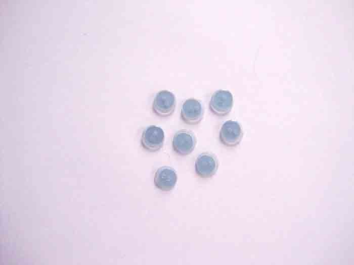 Een dubbele lichtblauwe kunststof knoop. Tweegaats