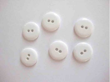 Een glanzende gladde tweegaats witte knoop met een doorsnee van 22 mm.