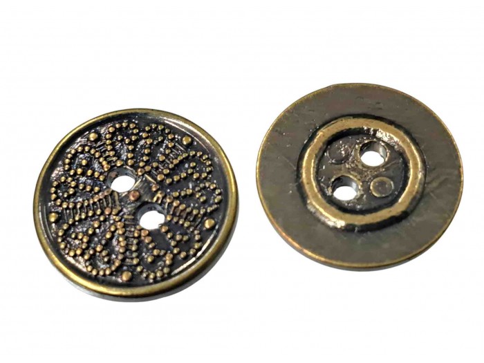 Metal look knoop Oud goud met raster motief 20 mm.