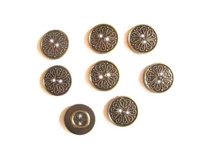 Metal look knoop Oud goud met raster motief 15 mm