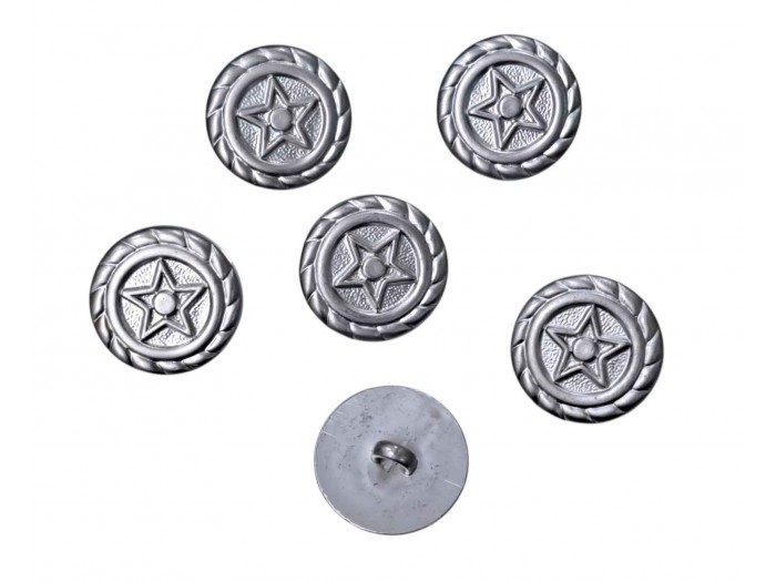 Metal look knoop Zilver met ster 20 mm