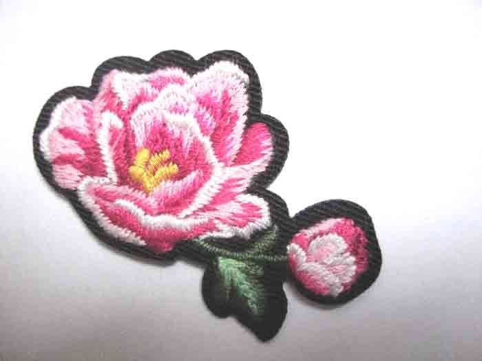 Kleine roze roos applicatie met 2 bloemen van 4.5 x 3 cm