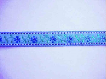 Lichtaqua kleurig sierband met een aqua bloem en een blauw randje