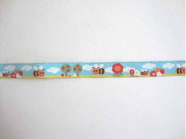 Sierband Dieren Roze met eekhoorn en lieveheersbeestje 15mm