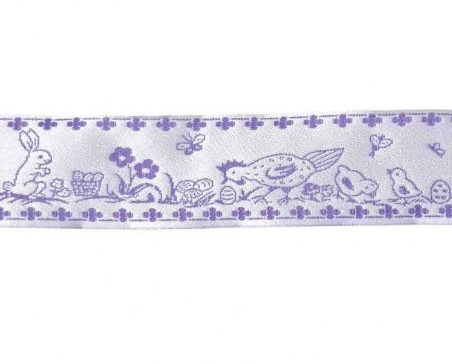 Sierband Lichtblauw met kip, kuiken en haasje 33mm
