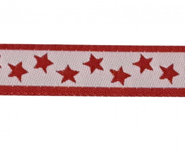 Sierband met rode sterretjes en rode randen op een witte achtergrond.