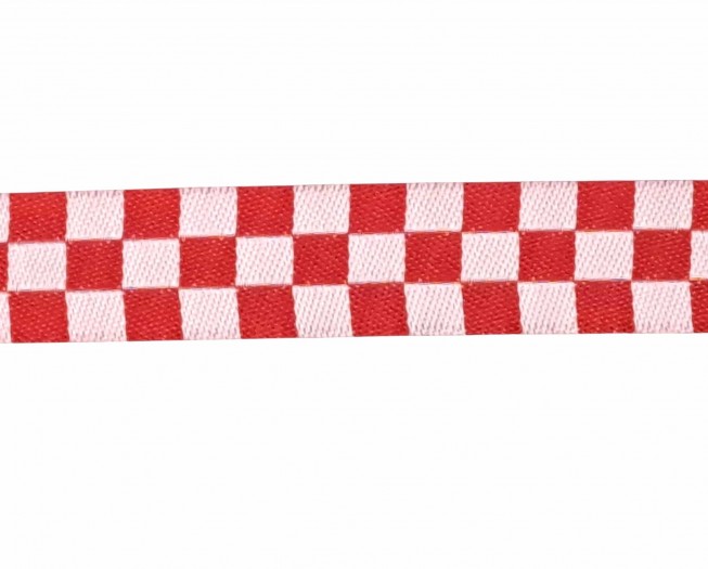Sierband Wit met rode sterretjes en rode randen 12mm