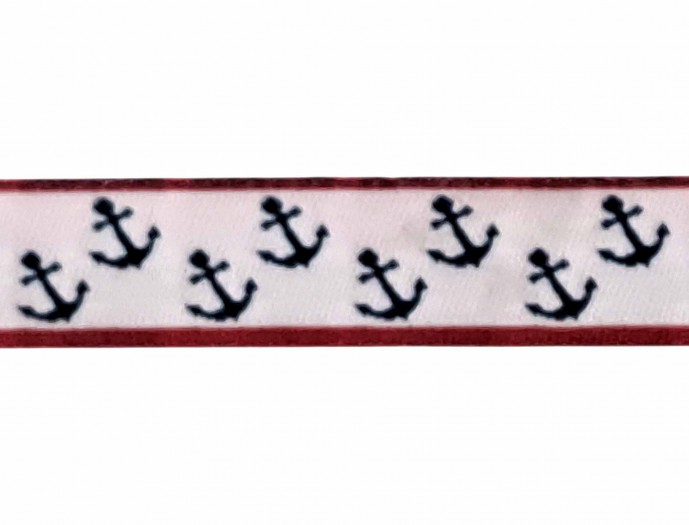Sierband met rode rand en blauwe ankers op witte achtergrond