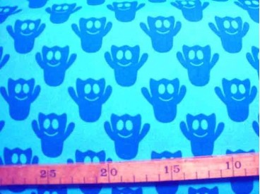 Een aqua kleurige katoen met petrol kleurige spookjes van 4 x 4 cm.