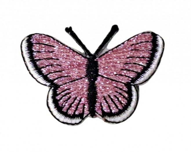 Vlinder applicatie Roze met wit randje 5 cm 30579