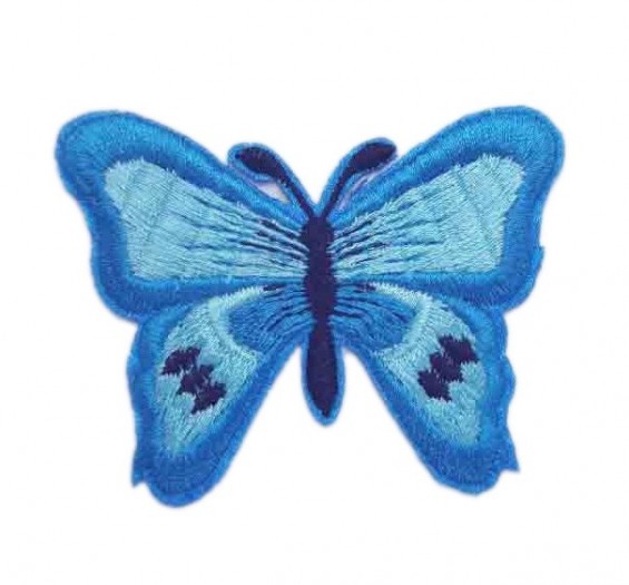 Een aqua kleurige vlinder applicatie van 7 x 6 cm.