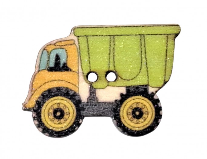 Houten knoop gekleurd Vrachtwagen Geel/aqua