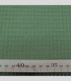 Legergroen grof wafeldoek. Het blokje is ongeveer 7 x 7 mm.