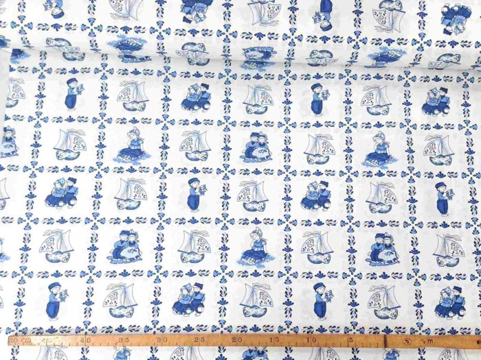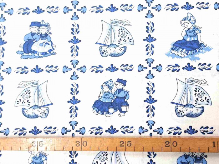 Delfts blauwe stof blauw gevlekt met huisjes 24tg